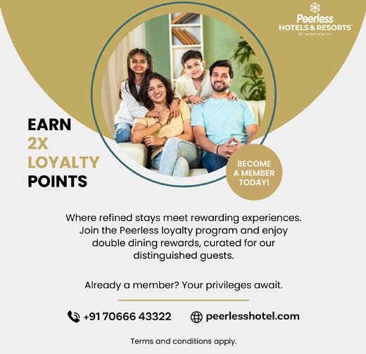 Peerless Hotels & Resorts has earned reputation in the field of hospitality because of its unparalleled service and warmth of luxury. As a mark of saying ‘Thank You’ to our patrons, we are delighted to announce the launch of our Loyalty Programme, Peerless Signature. Peerless Signature is a five tier programme with unique benefits. You will earn reward points on every stay, not just at any of Peerless Hotel properties but also at any of our food and beverage outlets.