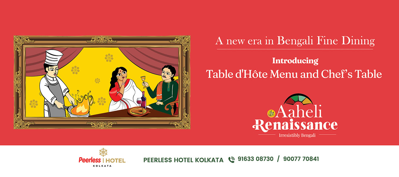 Table d'Hôte menu at Aaheli offers a curated multi-course meal, featuring a refined selection of dishes, each course showcasing the finest seasonal ingredients. The menu is crafted to present a harmonious progression of flavours that embodies the elegance and sophistication of fine dining with Bengali tradition and culture firmly ensconced at the heart of the offerings.