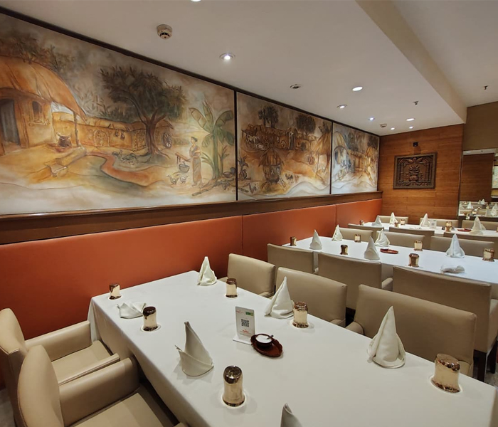 Aaheli is an award-winning Bengali restaurant located in Peerless Hotel Kolkata. It offers authentic Bengali cuisine, and its name is derived from the Arabic word "Aahel", meaning "authentic". The restaurant's interiors are steeped in Bengali culture and reflect the traditional era of Bengali gastronomy. The restaurant serves only lunch and dinner and is considered one of the finest in Bengali cuisine.